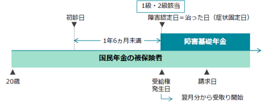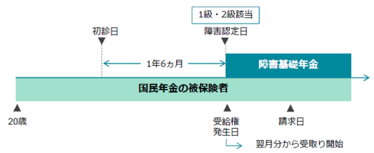 障害認定日に一定の障害状態にあると認められると、その翌月から年金の支給が始まります。